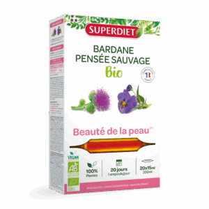Ingredientes: Extracto acuoso de Bardana* (raíces – Arctium lappa) (500 mg**) y de Pensamiento salvaje* (partes aéreas florida – Viola tricoloris herba) (500 mg**). 15 ml
