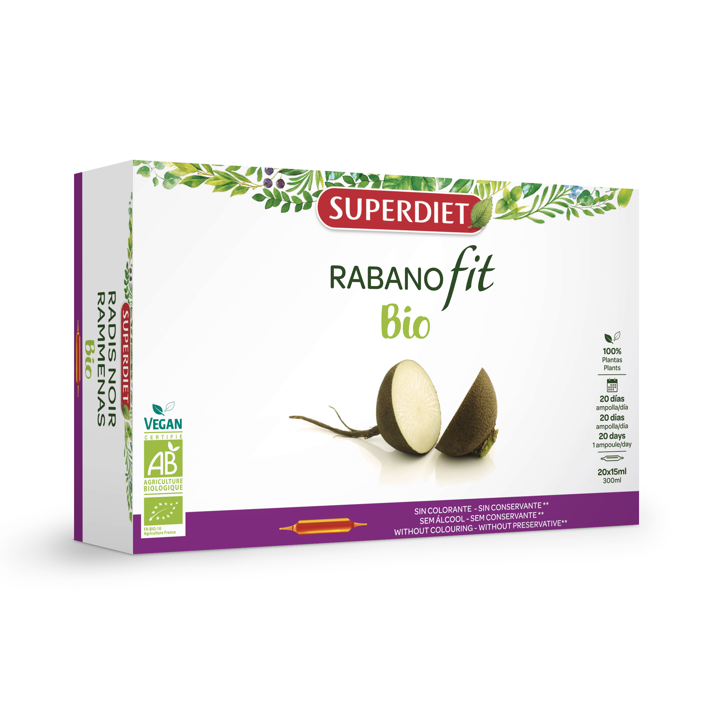 Ingredientes: Zumo de Rábano negro* (Raphanus sativus niger) – raíces) (15 ml**).