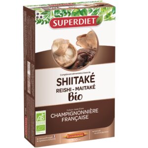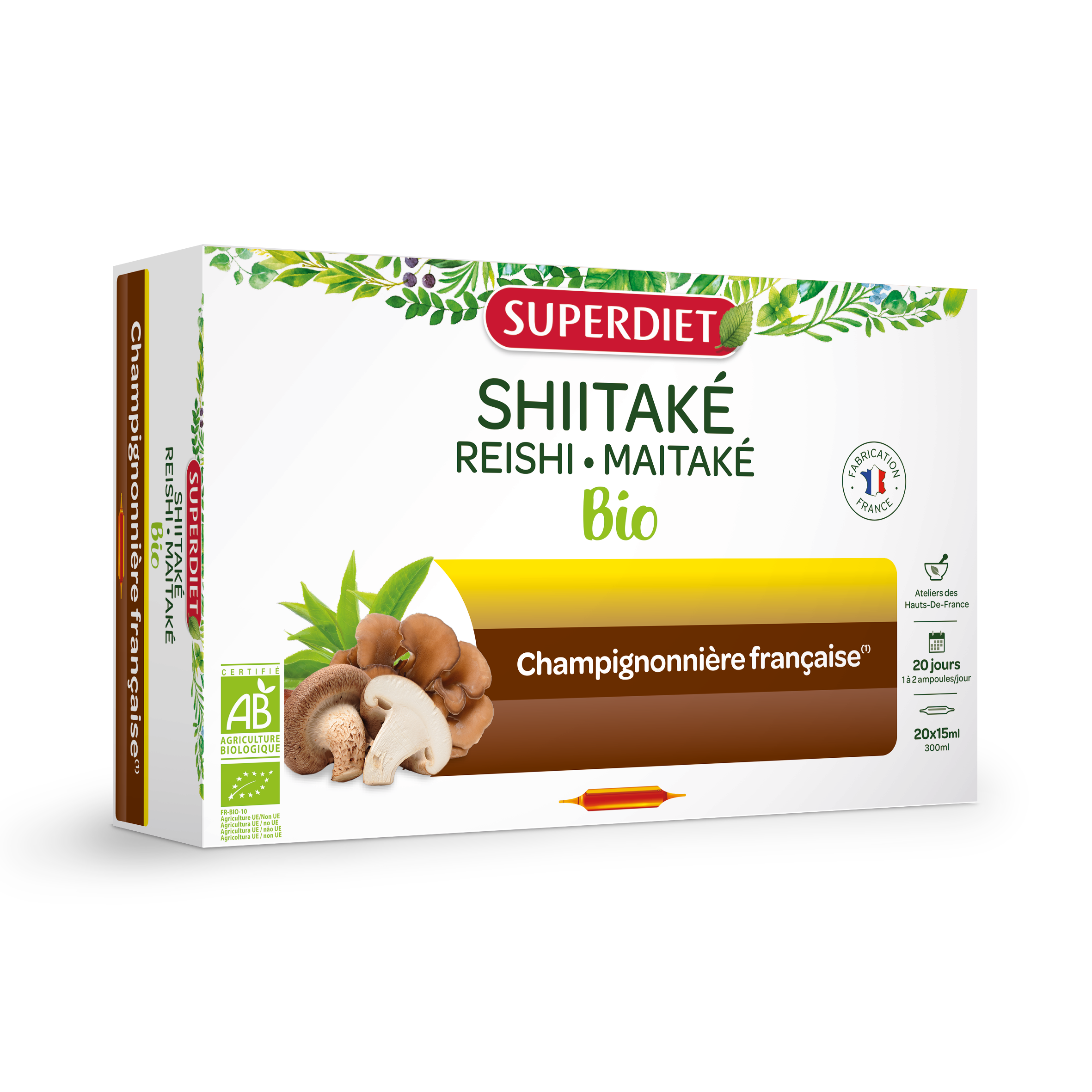 La combinación de tres setas chinas, Maitaké, Shitaké y Reishi, que encontramos en el producto Shiitaké + Bio, pone a nuestro alcance una forma natural de equilibrar nuestras defensas y ganar en salud y bienestar.